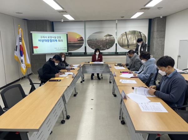 구리시는 이날 비상대응협의체 회의를 통해 확진자 발생 시 상황 SNS 공유, 확산 대처방안 논의, 기관별 역할, 시설 내 방역, 의료관리 등 현안 사항을 공유하며 관내 노인요양시설 오미크론 감염으로부터 선제적 대처 방안에 대해 논의했다.