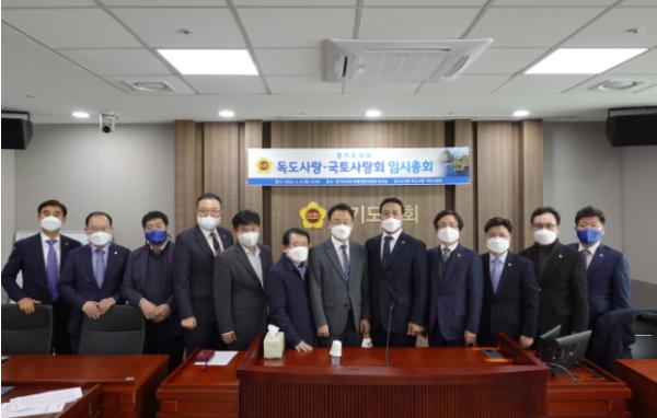 이번 임시총회는 독도사랑·국토사랑회 초대 회장을 역임한 경기도의회 민경선 의원이 사퇴함에 따라, 후임 회장 추천에 따른 차기 회장 선출 및 회원 화합의 일환으로 개최되었으며 경기도의회 제10대 도의원 회원들이 참석하여 활동의 의지를 견고히 하였다.