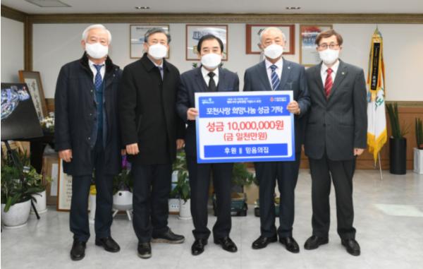 [한국뉴스타임=편집국] 포천시 일동면에 위치한 노인요양시설 믿음의 집이 17일 이웃돕기 성금 1,000만 원을 경기사회복지공동모금회를 통해 포천시에 기탁했다.