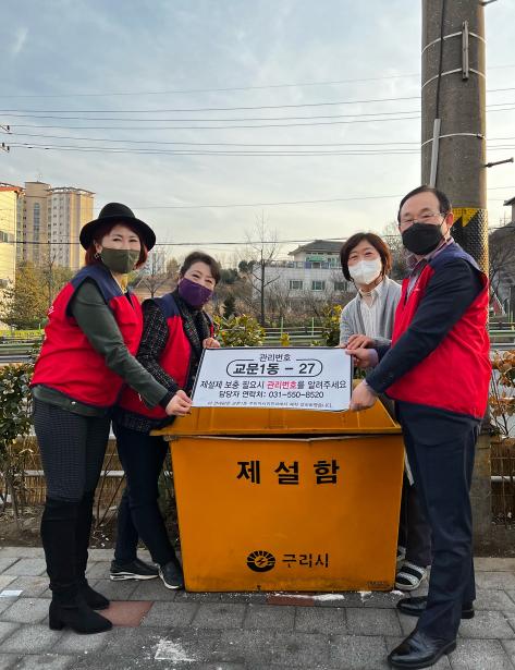 [한국뉴스타임=편집국] 구리시 교문1동 주민자치위원회는 14일, 동절기 강설 상황에 효율적으로 대처하기 위해 교문1동 주요 구간에 설치한 제설함 28곳에 관리번호와 전화번호가 표기된 표찰을 제작·부착했다.