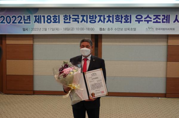 한국지방자치학회는 우리나라 지방자치와 관련된 이론과 실제를 조사ㆍ연구하는 기관으로 1988년에 창립되어 2005년부터 매년 전국 지방자치단체의 입법 활동을 전문적으로 평가하여 단체상과 개인상 부문에서 우수조례를 선정해 오고 있으며, 이번 우수조례는 2020년 9월 1일부터 2021년 8월 31일까지 제·개정된 전국 지방자치단체의 조례를 대상으로 진행되었다.