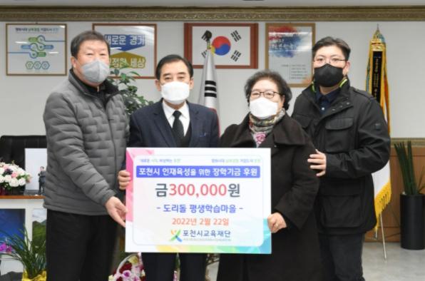 (재)포천시교육재단은 지난 22일 이동면 도리돌 평생학습마을(위원장 윤경자)에서 나무공예품을 직접 제작해 판매한 수익금 30만 원을 기탁했다고 밝혔다.