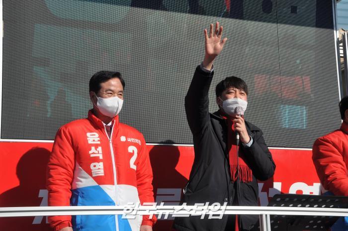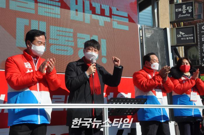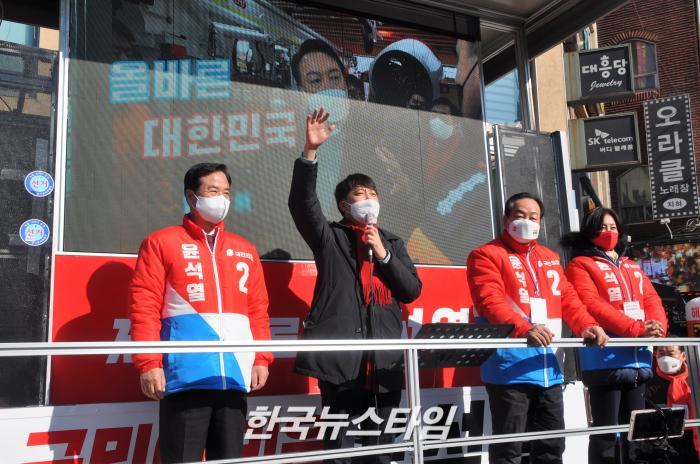 [한국뉴스타임=포천] 23일 오후 3시, 국민의힘 이준석 대표가 포천시를 방문하여 윤석열 대선 후보 지지를 호소했다.