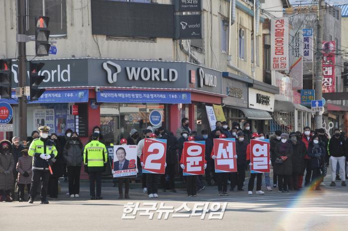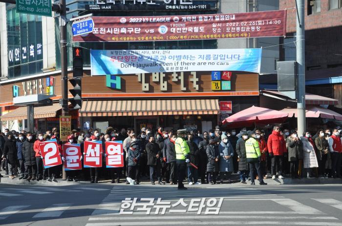 이날 지원유세가 이루어진 포천시 신읍사거리 일대는 선거 운동원 및 당원과 지지자들이 모여 국민의힘 승리를 외치며 북새통을 이루었다.
