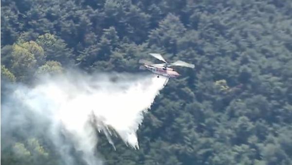 산림당국은 산불진화헬기 3대(산림2, 군 1대)와 산불진화인력 등을 긴급 투입하여 산불 진화중에 있다.