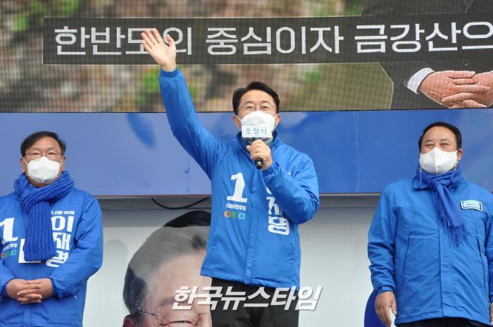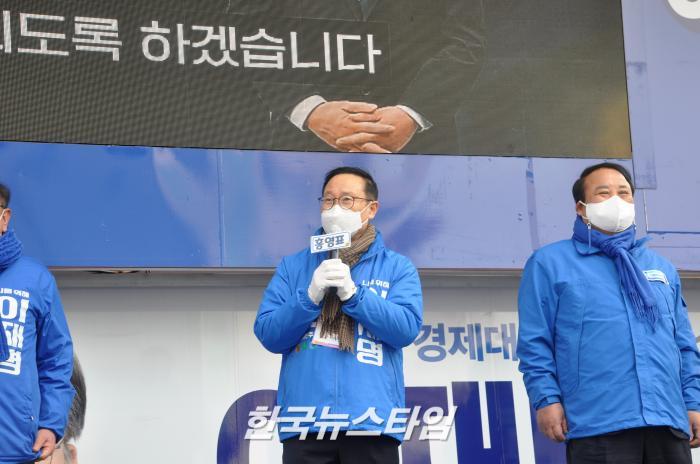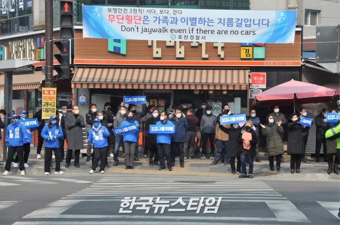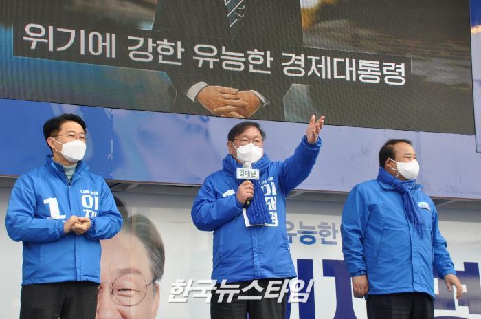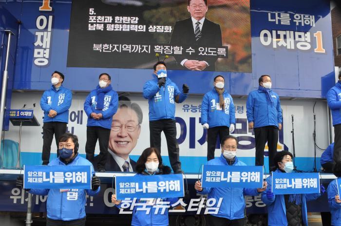[한국뉴스타임=포천] 25일 더불어민주당 경기도선대위는 포천시 신읍사거리에서 이철휘 지역위원장, 박 정 경기도당위원장, 홍영표 의원, 김태년 의원, 조정식 의원의 이재명 대선 후보 지원 집중유세가 있었다.