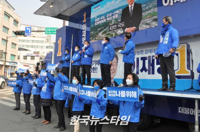 이어 민주당 홍영표·박정·조정식·김태년 국회의원은 “준비된 대통령 이재명 후보는 대한민국이 처한 위기를 능히 극복하고 대도약의 시대를 열어나갈 실력을 갖춘 유일한 후보다.”라며 지지를 호소했다.