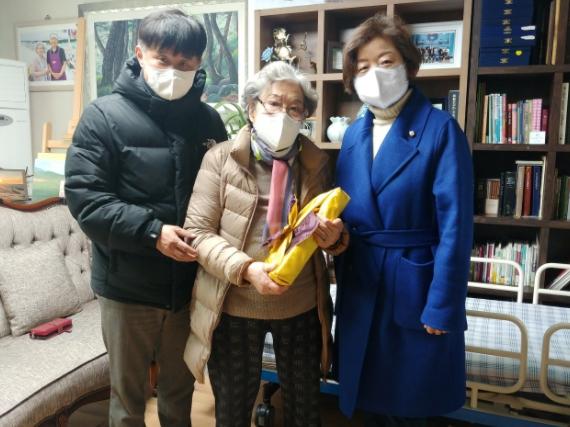 문 부의장은 25일 오후 지역구 도의원인 김경호 의원(더민주, 가평)과 함께 가평군 북면 소재 백운호 옹의 자택에서 부인인 서건자 여사(87)에게 위문품을 전달했다. 백운호 옹은 폐렴으로 지난해 말부터 한림대성심병원에 입원 중이다.