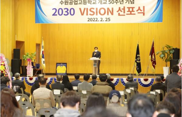 장현국 의장은 축사를 통해 “오늘 수원공고는 비전 선포식에서 개교 이래 지난 50년을 되돌아보고 다음 백 년을 향한 비전을 발표한다”라며 “수원공고가 수원과 경기도의 인재양성소이자 명문 거점학교로서 다음 백년에도 계속해서 성장할 수 있도록 경기도의회에서 많은 노력을 기울이겠다”라고 말했다.