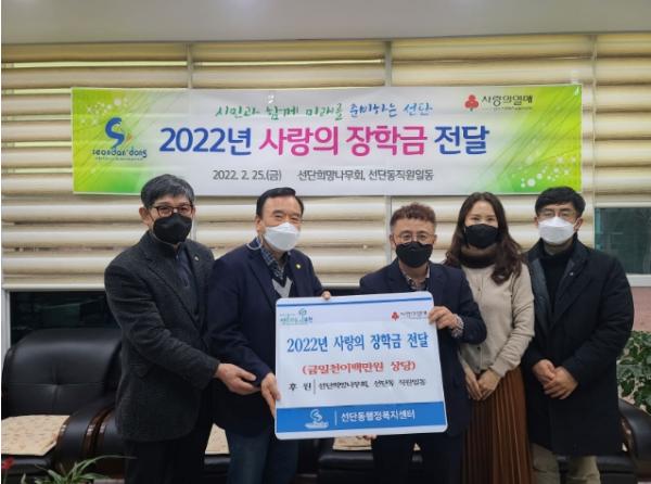이번 장학금은 선단희망나무회 회비와 선단동 직원들의 성금을 더해 약 1,200만 원의 경기도 사회복지공동모금회 선단동 예치금으로 지원했다.