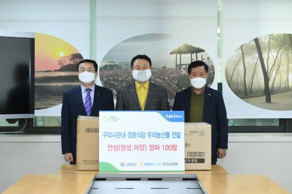 농협 구리시지부는 코로나19로 어려움을 겪고 있는 양파 농가의 양파를 매입해 구리시 기초생활수급자·차상위계층 및 저소득 노인이 약 600명이 이용하고 있는 관내 경로식당에 1개소 당 양파(3kg) 20망씩 총 100망 후원했다.