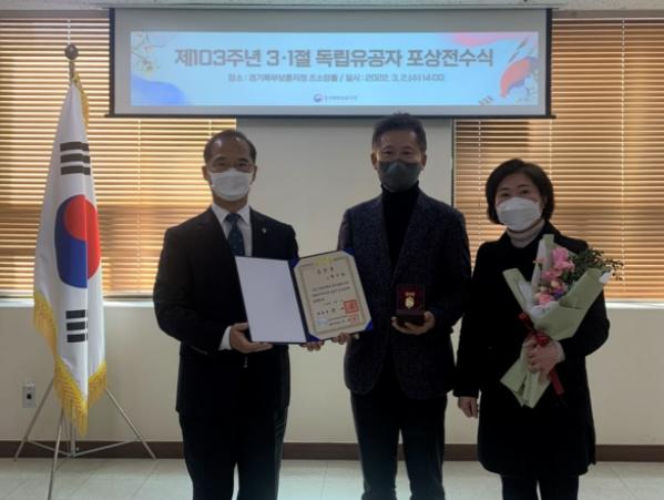 [한국뉴스타임=편집국] 경기북부보훈지청은 2022년 3월 2일 14:00, 경기북부보훈지청 조소앙홀에서 故박주완 지사의 유족에게 제103주년 3·1절 계기 포상을 전수했다.