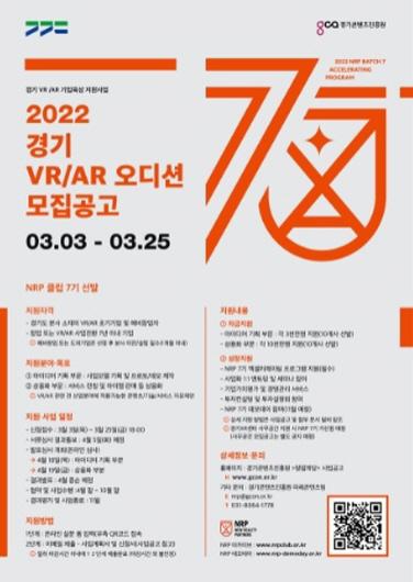 2017년부터 매년 개최된 오디션은 도내 가상현실(VR), 증강현실(AR) 유망기업을 발굴하는 자리다. 선발된 기업은 NRP(New Reality Partners) 7기수로 활동하며, 개발자금과 6개월간의 육성 프로그램을 지원받는다.