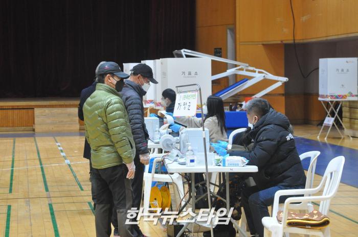가평체육관에 설치된 사전투표소는 아침부터 인근 군부대 장병들과 지역 유권자들이 소중한 한 표를 행사하였다. 김성기 가평군수도 오전 8시경 사전투표를 하였다.