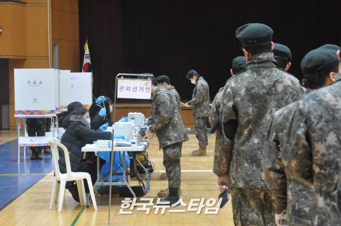 코로나19 확진자와 격리자는 사전투표 2일 차인 오는 5일에 방역 당국의 외출 허용 시각인 오후 5시부터 오후 6시 전까지 사전투표소에 도착하면 일반 선거인과 동선이 분리된 임시 기표소에서 투표할 수 있다.