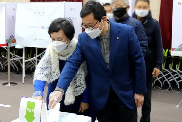 [한국뉴스타임=편집국] 국회 정무위원회 소속 더불어민주당 김한정 의원(경기 남양주을)은 제20대 대통령선거 사전투표 첫날인 4일 오전 남양주시 별내동 행정복지센터에 설치된 사전 투표소에서 배우자, 지지자와 함께 사전투표를 마쳤다.