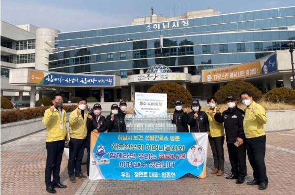 [한국뉴스타임=편집국] 해군전우 어머니봉사회 하남지회는 지난 4일 하남시보건소를 방문해 코로나19 최일선에서 고생하는 보건소 및 미사보건센터 의료진과 종사자들을 위해 생수 4000개를 전달했다.