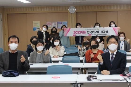 이날 열린 한국어 교육 개강식에는 김상호 시장, 최종윤 국회의원과 한국어교육 수강생을 비롯한 센터 이용자, 후원자, 유관기관 관계자 등 100여명이 줌(zoom)과 대면으로 참석했다.