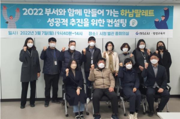 이날 하남팔레트는 평생학습 관점에서 정주성 향상을 위한 8개 협업과제를 놓고 머리를 맞대었다. 이와 함께 각 부서별 사업을 검토하며 세부 실행계획을 수립할 수 있도록 전문가 그룹의 개별 컨설팅을 진행했다.