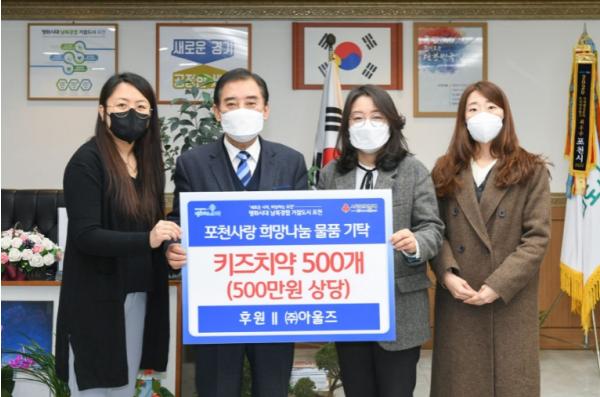 [한국뉴스타임=편집국] 포천시는 지난 7일 주식회사 아울즈가 포천시에 키즈전용치약 500개(500만 원 상당)를 경기사회복지공동모금회를 통해 포천시에 기탁했다고 밝혔다.