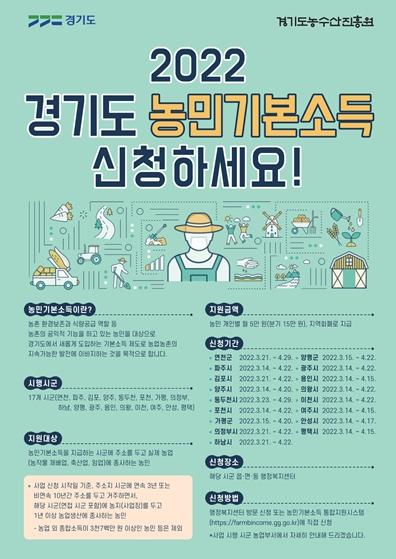 [한국뉴스타임=편집국] 경기도가 14일부터 도내 17개 시군에서 농민기본소득 신청 접수를 시작한다. 도는 4월 중 신청 절차를 완료하고 5월부터 매월 5만 원의 농민기본소득을 지급할 계획이다.