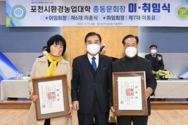 [한국뉴스타임=편집국] 포천시 환경농업대학 총동문회는 지난 11일 농업기술센터 대강당에서 제6대·7대 총동문회장 이·취임식을 개최했다.