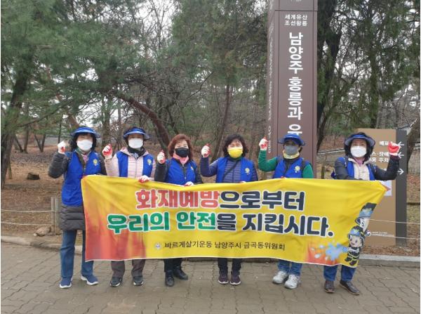 회원들은 홍유릉 산책로와 주변 골목길 등 마을 곳곳을 돌아다니며 방역수칙을 준수하면서 캠페인을 벌였으며, 이를 통해 주민들에게 최근 발생한 산불 등 화재의 심각성을 알리고 화재 예방을 위해 경각심을 가질 것을 요청했다.