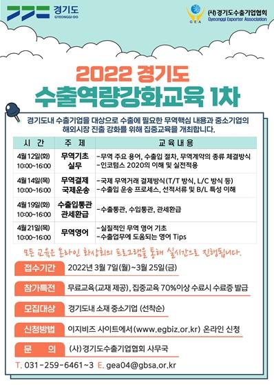 [한국뉴스타임=편집국] 경기도가 코로나19, 디지털전환, 탄소중립 등 급변하는 글로벌 통상환경에 선제적으로 대응하고자 도내 수출기업 520개 사를 대상으로 ‘2022년도 수출역량강화 교육’을 무료로 추진한다고 17일 밝혔다.