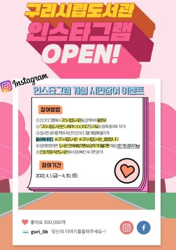 또한, 구리시립도서관은 이번 인스타그램 개설을 기념하여 “구리시립도서관은 나에게 OOO이다.”를 이유와 함께 적고 인증하면 도서관 특전을 제공하는 등 다양한 구독자 참여 이벤트를 진행한다.