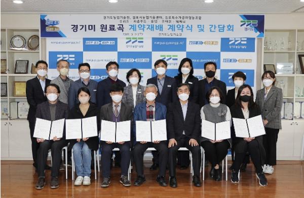 [한국뉴스타임=편집국] 경기도농업기술원이 17일 화성 농기원에서 도내 5개 쌀 가공업체와 ‘경기미 원료곡 계약재배를 위한 계약식 및 간담회’를 가졌다.