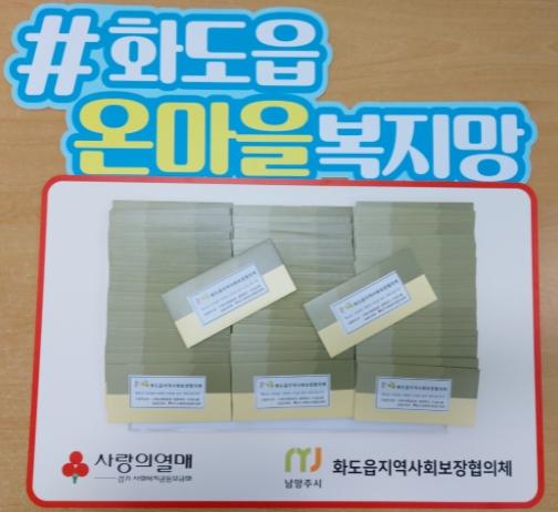 [한국뉴스타임=편집국] 남양주시 화도읍 지역사회보장협의체(공공위원장 최대집, 민간위원장 김연중)는 코로나19로 지쳐있는 저소득층을 위로하기 위해 직접 필요한 물품을 구매해 사용할 수 있도록 농촌사랑상품권 5만 원권을 240가구(1천2백만원 상당)에 전달했다고 밝혔다.