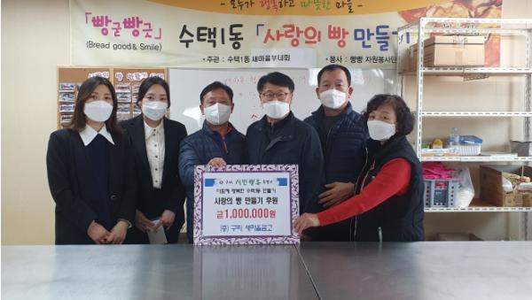 [한국뉴스타임=편집국] 구리시는 17일 수택1동 행정복지센터에서 구리새마을금고(이사장 손원제)로부터 “사랑의 빵 만들기 사업” 지원을 위한 후원금 100만 원을 전달받았다.