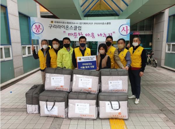 [한국뉴스타임=편집국] 구리시는 17일 구리시보건소 광장에서 구리 라이온스클럽(회장 김해진)으로부터 관내 취약계층 홀몸 어르신께 드릴 이불을 전달받았다.