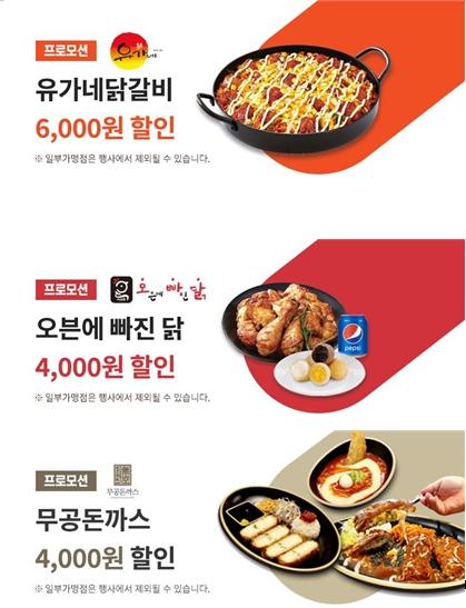‘피자에땅’과 ‘무공돈까스’, ‘오븐에빠진닭’은 1만5,000원 이상 주문 고객이 사용할 수 있는 4,000원 쿠폰을 제공해 고객 혜택을 더욱 넓힐 예정이다.