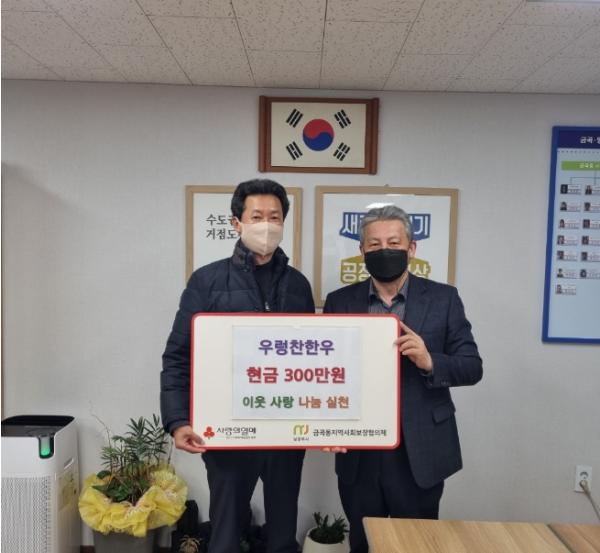 [한국뉴스타임=편집국] 남양주시 금곡양정행정복지센터는 21일 우렁찬한우에서 관내 저소득 가구를 위해 현금 300만원을 후원했다고 밝혔다.