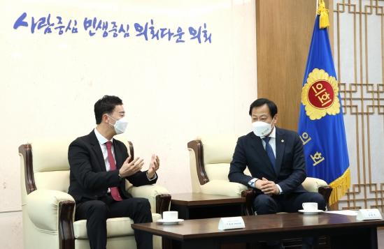 이에 장 의장은 “‘남미의 심장’으로 불리는 파라과이에서 한국인인 이 주장관이 중요한 역할을 해주어서 반갑고, 든든하다”라며 “그간 코로나 탓에 국제교류에 제약이 많아 아쉬움이 컸는데, 제11대 의회에서 양 기관이 더욱 활발히 교류하며 좋은 결과를 맺었으면 한다”라고 답했다.