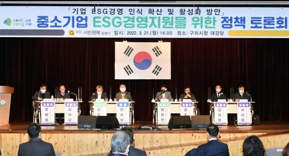 [한국뉴스타임=편집국] 구리시는 21일 시청 대강당에서 지역 중소기업 ESG경영 지원을 위한 “기업ESG 경영인식 확산 및 활성화 방안”이라는 주제로 토론회를 개최했다.