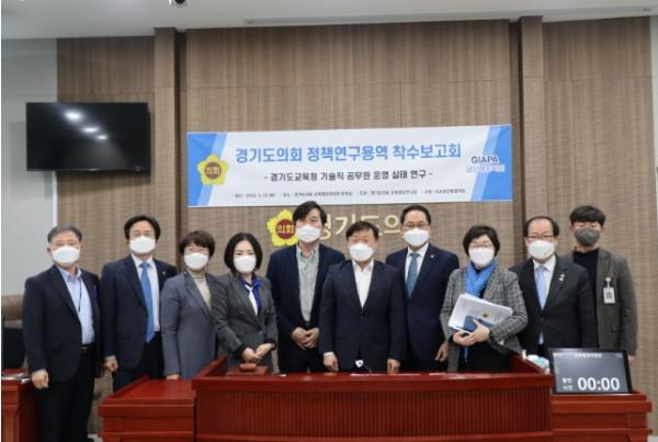 [한국뉴스타임=편집국] 경기도의회 의원연구단체인 ‘교육행정연구회’는 22일 교육행정위원회 회의실에서 경기도교육청 기술직 공무원의 업무 분석을 통한 인사제도 등 해법 방안을 모색하고자 추진한 정책연구과제 ‘경기도교육청 기술직 공무원 운영 실태 연구’의 착수보고회를 개최했다.