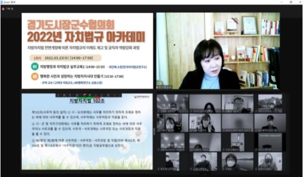경기도시장군수협의회(회장 곽상욱 오산시장)는 지방자치법 전면개정에 따른 자치법규의 이해도 제고와 공직자 역량 강화를 위해 경기도내 31개 시·군의 공무원을 대상으로 “2022년 자치법규 아카데미” 과정을 개설하여, 올해 3월 23일, 4월 14일 총 2회에 걸쳐 진행한다.