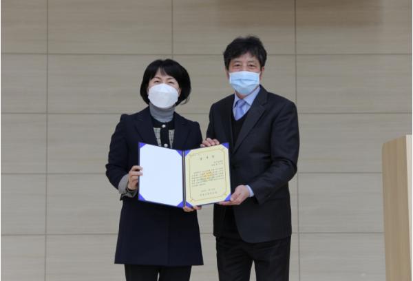 [한국뉴스타임=편집국] 지난 21일 안산시 최초 여성시장 출마를 선언한 경기도의회 원미정 의원(더불어민주당, 안산8)이 덕성초등학교로부터 실내체육관 건립과 관련한 예산확보 공로에 대하여 감사패를 수여 받았다.