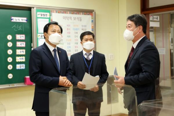 장 의장은 이날 오후 수원 신풍초등학교와 용인 상현중학교를 잇따라 방문했다. 그는 교실, 도서관 등 교내 시설별 코로나 방역물품 현황을 점검한 뒤, 경기도교육청 등 유관 기관 관계자와 차담을 가졌다.
