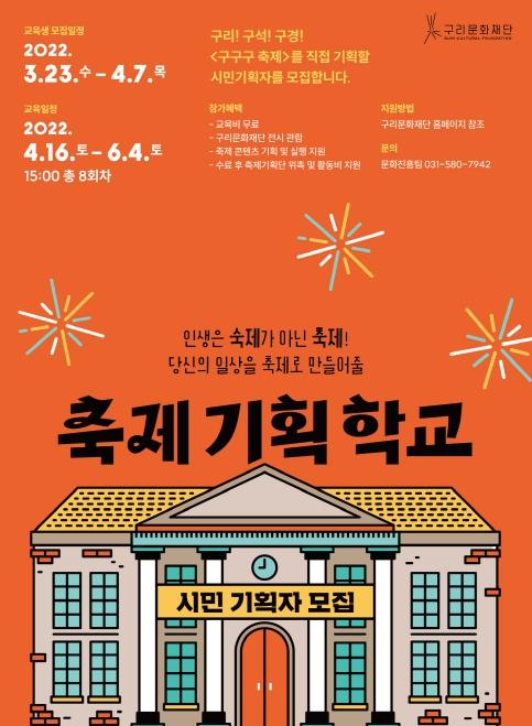 [한국뉴스타임=편집국] 구리문화재단은 오는 4월 7일까지 ‘축제 기획 학교’ 수강생을 모집한다.