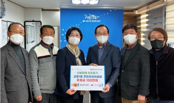 [한국뉴스타임=편집국] 구리시 교문1동 주민자치위원회가 23일 강원·경북 산불피해 이재민을 위한 후원금 100만원을 교문1동 행정복지센터에 전달했다.