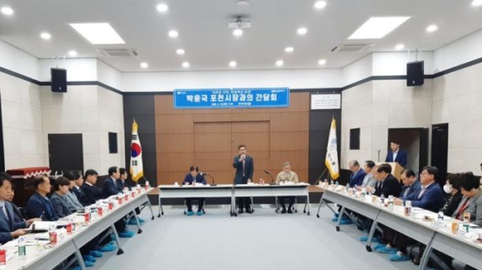 [KNT포천뉴스타임=명기자] 19일 오전 포천시 박윤국시장은 창수면 우정식품 대회의장에서 포천상공회의소 회원들과 간담회를 가졌다. 이날 간담회에는 문화경제국 정동주국장, 복지환경국 한기남국장과 실무과장들이 배석하여 지역내 사업장의 현안해결에 실질적인 도움이 되는 계기를 마련하였다. 박윤국시장은 인사말을 통해서 코로나19 사태에서 힘든시간을 견디어 주신 상공인들에게 감사를 표하며 앞으로 더큰 도전이 도래 할 수 있기에 최선을 다하여 주시길 부탁드린다고 전했다. |