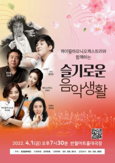 [한국뉴스타임=편집국] 재단법인 포천문화재단(이사장 박윤국)은 오는 4월 1일 금요일 2022년 첫 기획공연 ‘케이필하모닉오케스트라와 함께하는 슬기로운 음악생활’을 개최한다.