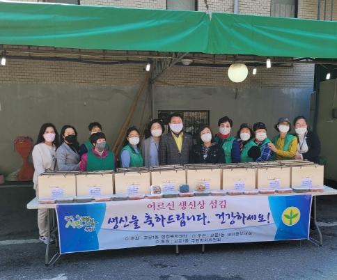 [한국뉴스타임=편집국] 구리시 교문1동 새마을부녀회(회장 손미숙)는 29일 관내에 거주하는 독거어르신들 중 생신을 맞으신 분들에게 생신상을 대접해드리는 행사를 진행했다.