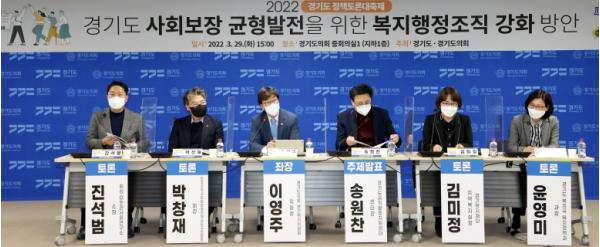 [한국뉴스타임=편집국] 경기도의회 보건복지위원회 이영주 위원(무소속, 양평1)이 좌장을 맡은'경기도 사회보장 균형발전을 위한 복지행정조직 강화 방안 토론회'가 3월 29일 경기도의회 중회의실1에서 개최됐다.