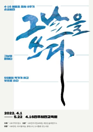 전시회는 세종손글씨연구소 소속 작가 55명이 세월호 참사 기억과 진실규명 내용이 담긴 4.16구술증언론 ‘그날을 말하다’를 읽고 희생된 사람들을 기억하기 위해 쓴 붓글씨 100여 점이 전시된다.