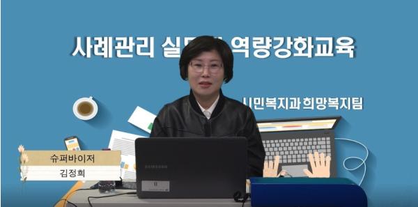 공무원 순환 배치 등으로 통합사례관리 업무의 지속성, 전문성이 저해되는 공공 사례관리의 문제점을 극복하기 위해 신규 업무담당자를 대상으로 현장슈퍼바이저로 활동하고 있는 김정희 통합사례관리사를 초빙하여 맞춤형 교육 프로그램을 제작·배부했다.