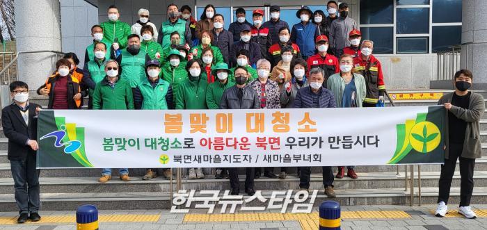 [한국뉴스타임=편집국] 가평군 북면행정복지센터(면장 남경호) 직원들은 북면새마을지도자, 새마을부녀회, 이장협의회, 주민자치회, 의용소방대, 산불감시원과 함께 3월 30일 9시부터 1시간 동안 새봄맞이 대청소를 실시하였다.